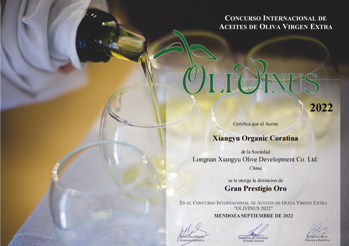 2022 OLIVINUS Xiangyu Organic Coratina金獎(jiǎng)證書