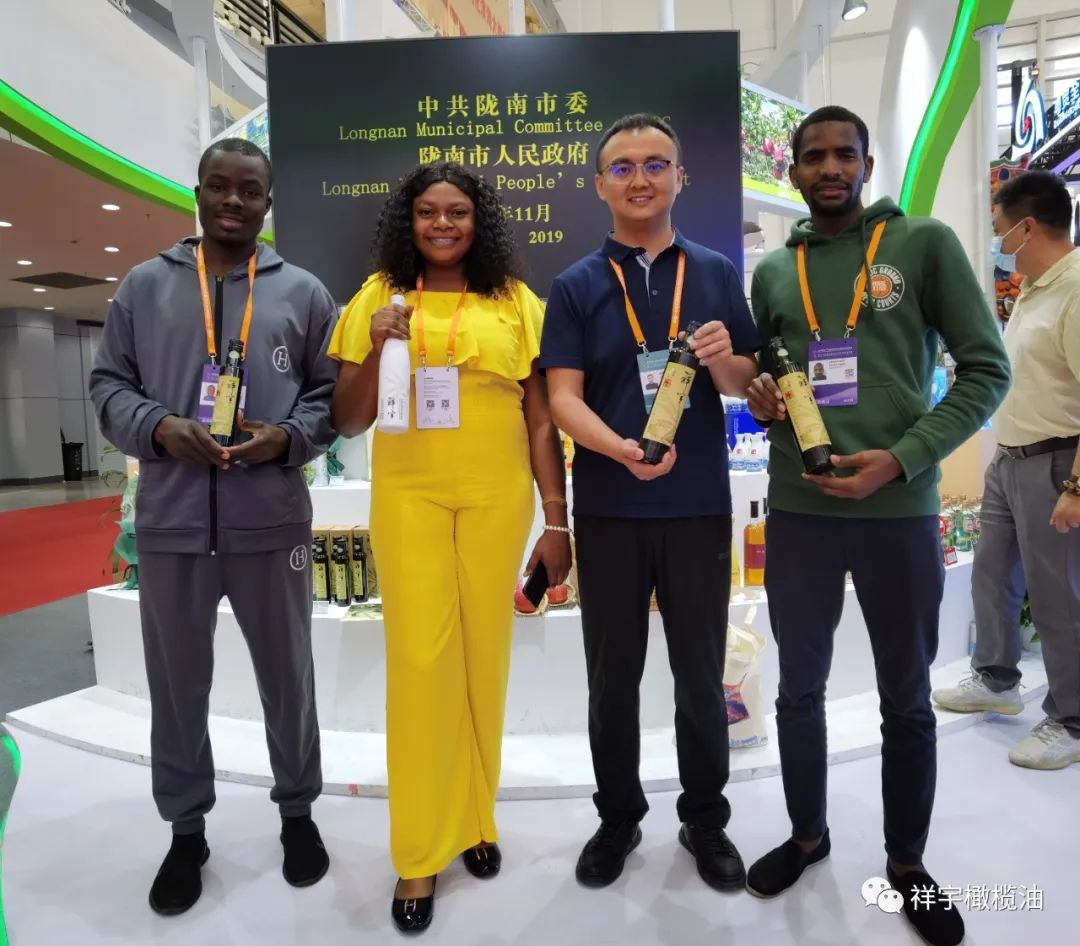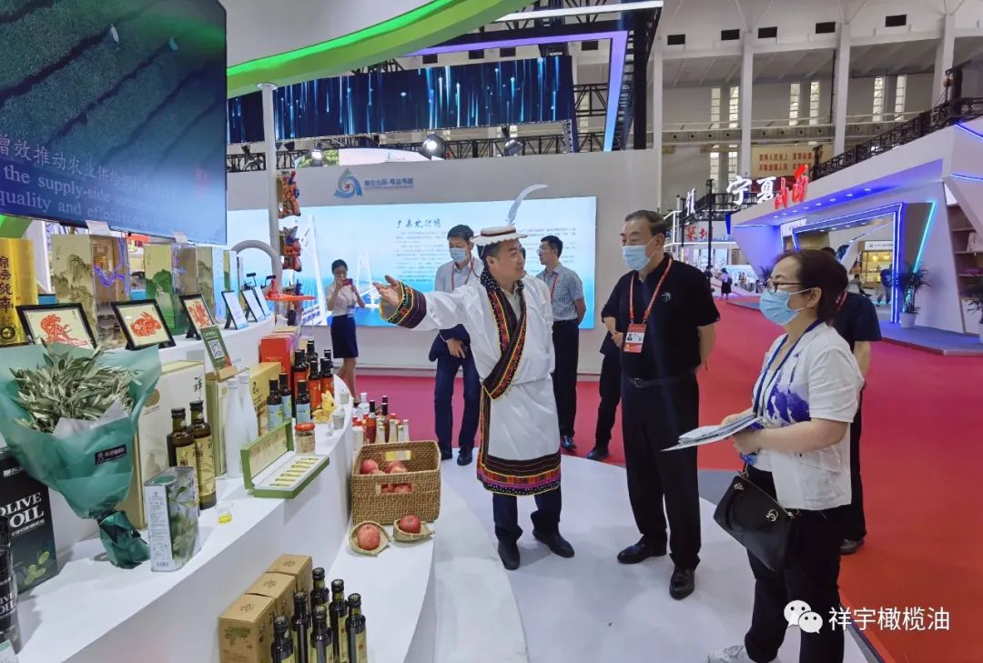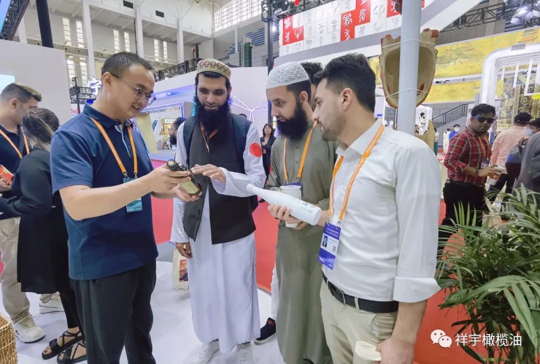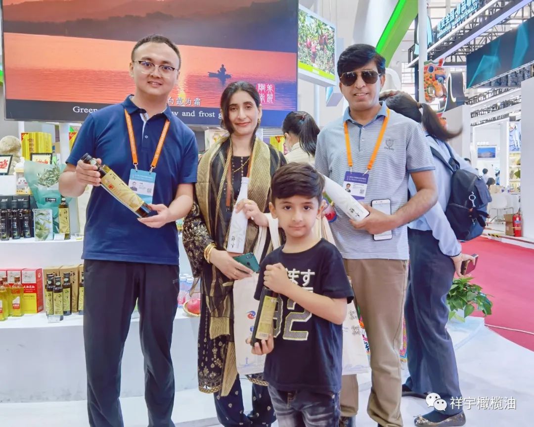 展會現場,來賓、客商紛紛到祥宇橄欖油展臺前駐足品鑒,